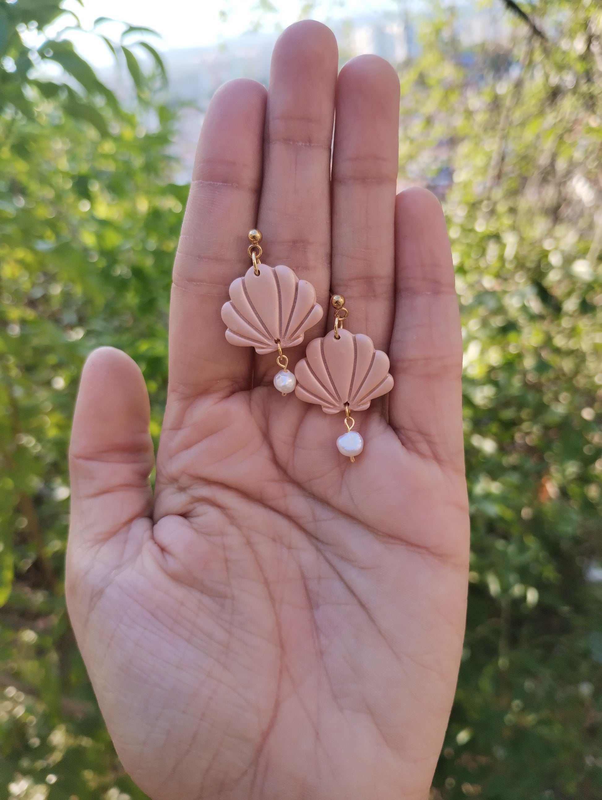 Pendientes artesanales en arcilla polimérica y perla dulce cultivada